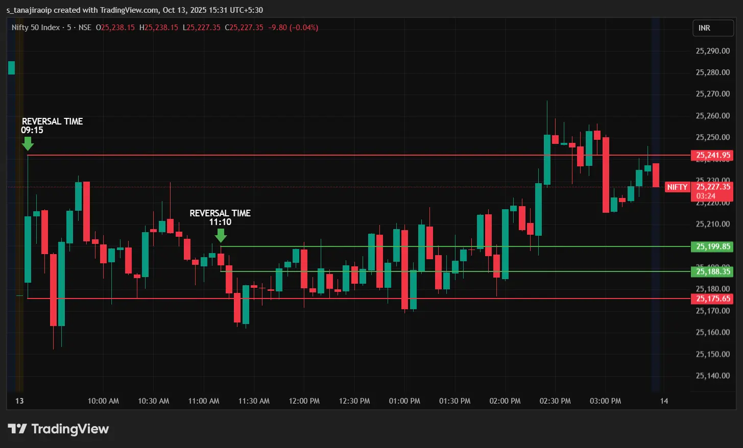 Crazy Candle Reversal Time on Chart - 13 Oct 2025